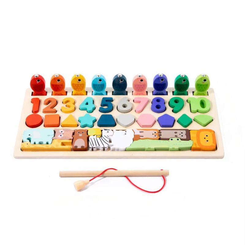 * Desarrollo de la motricidad fina: al manipular las piezas y la caña de pescar, los niños fortalecen los músculos de las manos y los dedos.