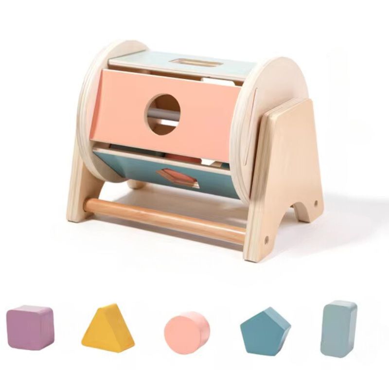 Tambor giratorio de madera de diferentes colores y con piezas encajables.